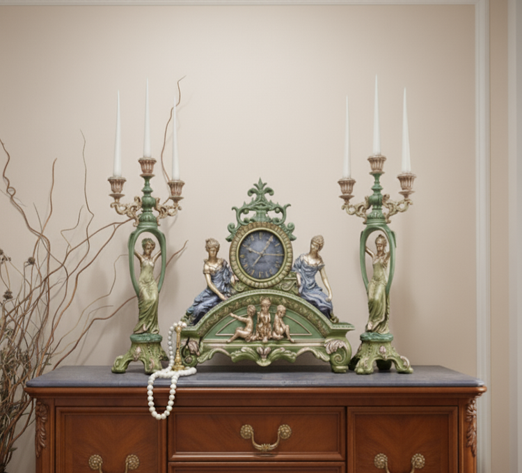 ساعت رومیزی و شمعدان جفتی سلطنتی