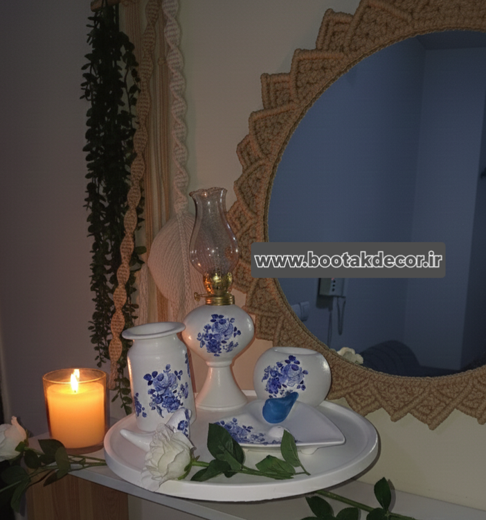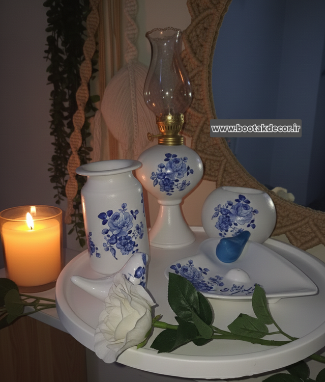 ست رومیزی و دکوری قلم آبی رز کد ۶۶۱۱